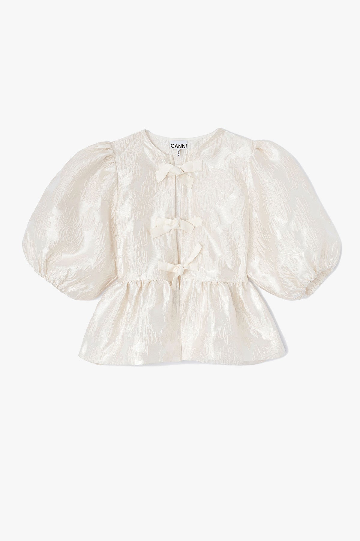 GANNI - Satin Cloque Peplum Blouse Egret
