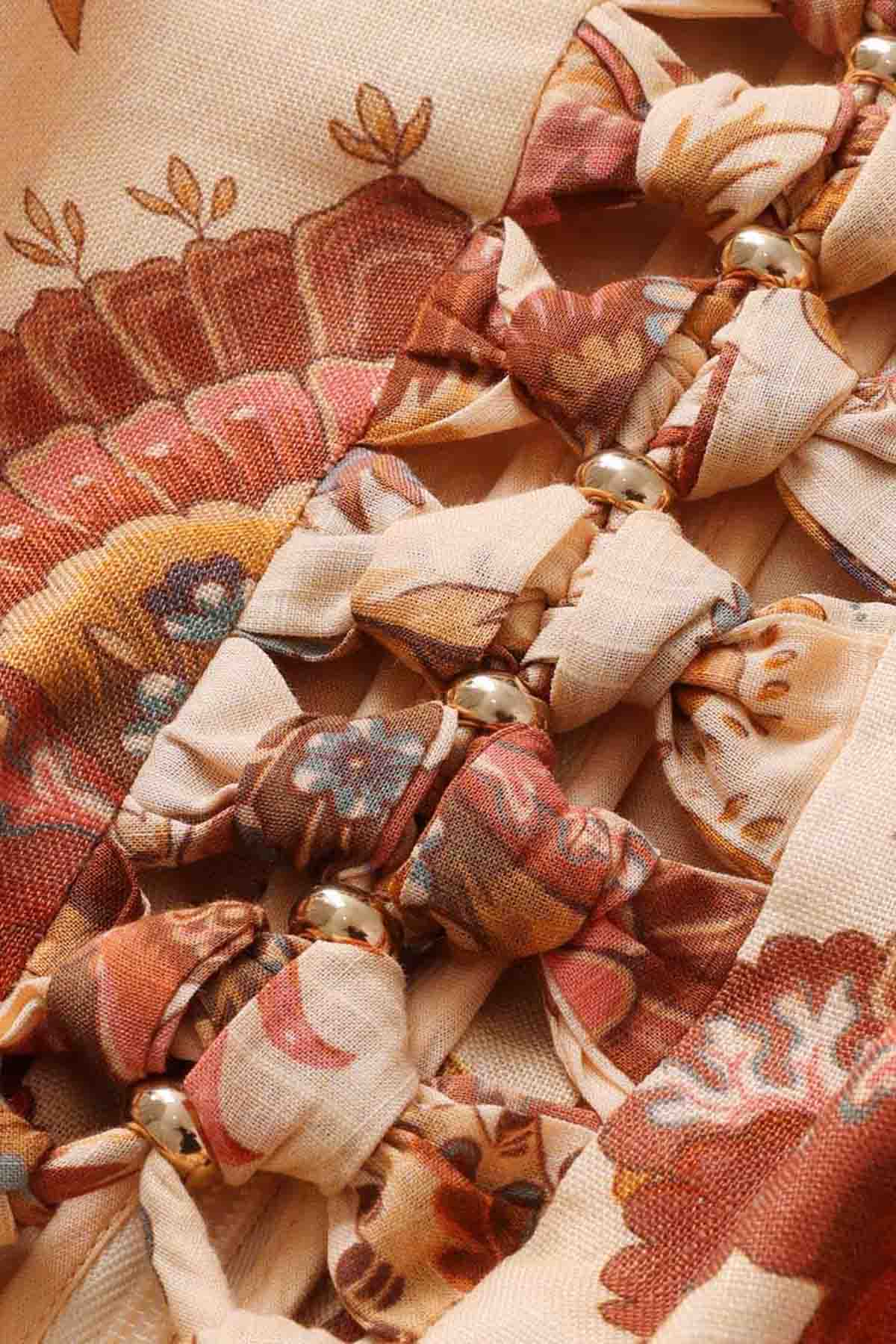 - Knyttede perledetaljer over byste og midje