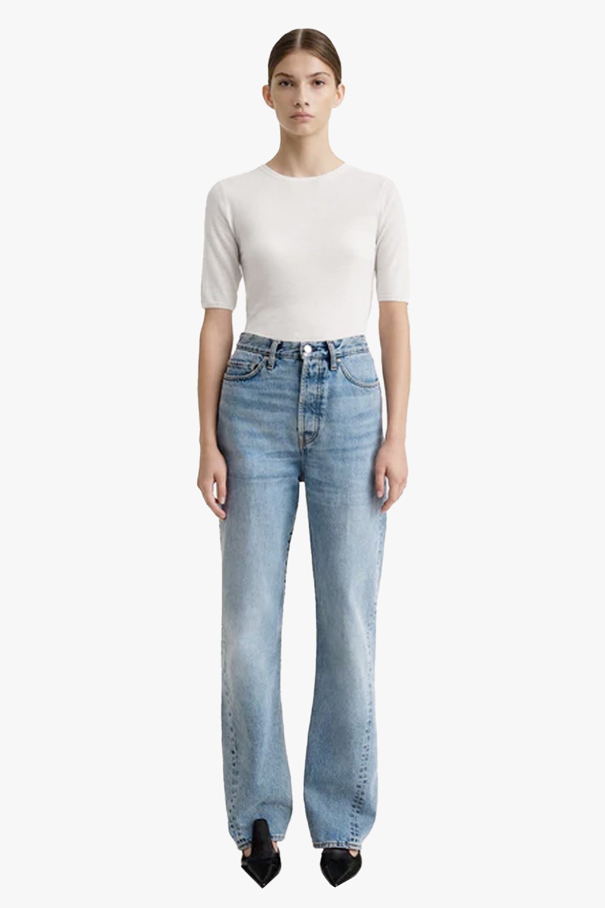 TOTEME jeans named after the signature twisted side seams running along the full-length, straight legs. They are made in Italy from mid-weight and rigid organic-cotton denim washed following environmentally conscious practices, then finished with a mid-high waist and button fly. Wear them a few times to feel them mold naturally to your body.